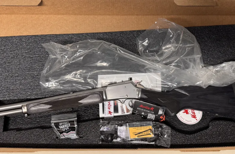 New in box, the new 10mm auto lever action from Ruger Marlin. It is the Trapper version with 16” barrel.