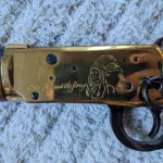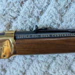 Carabine à levier Winchester modèle 94 Little Big Horn Centennial (1876-1976) en édition limitée (commémorative) en calibre .44-40 Win. (.44 WCF). Elle est équipée d'une carcasse en laiton ornée de magnifiques gravures sur le mécanisme et la crosse. Elle vient avec de boîte d'origine. Ce modèle est également doté d'un anneau de selle latéral. Jamais utilisé, il est dans son état d'origine !