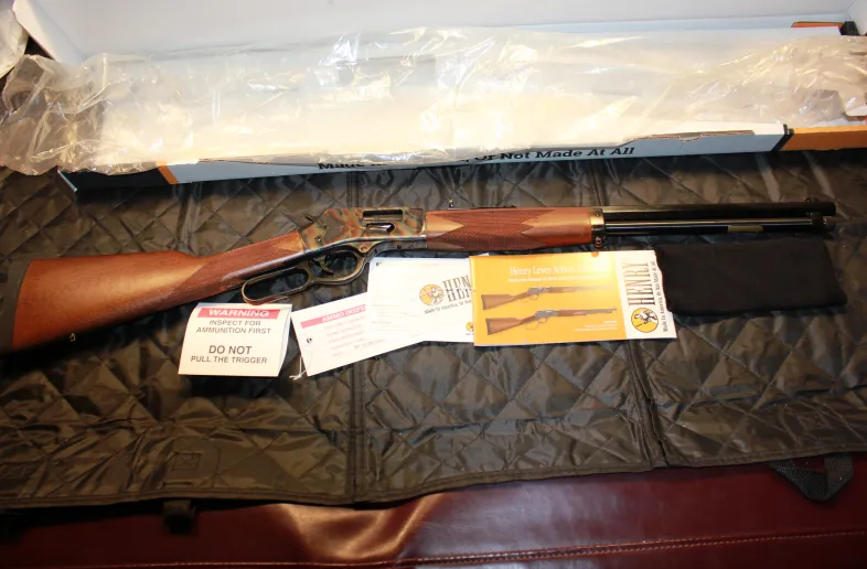 All in price, except shipping! Henry Colour Case Hardened 44 Magnum side gate, Number 3. New in box!