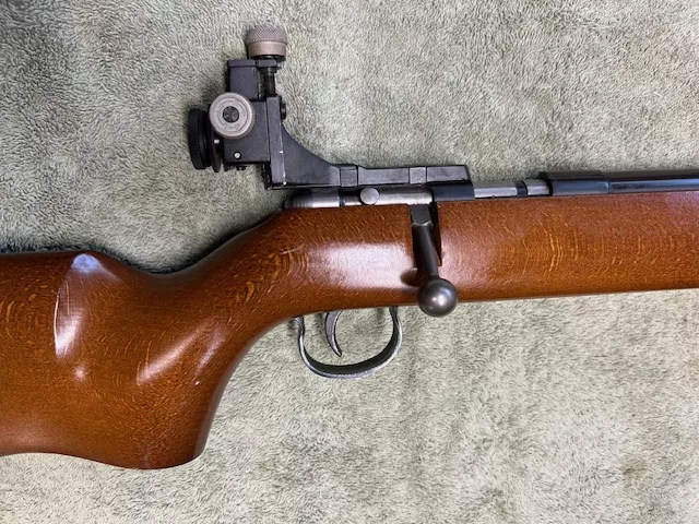 Aperture sights as shown included. No issues, near mint, very low rounds fired. Adjustable trigger. 24 inch heavy barrel.