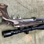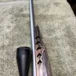 24 inch barrel, Quigley 223 specific 50 grain calibrated 4-16 x 50mm scope, As new condition, no marks no issues. Very low round count. Notice Browning insignia on hand grip. Scope is Canadian made. A very comfy and unusual beautiful stock. Will not separate.