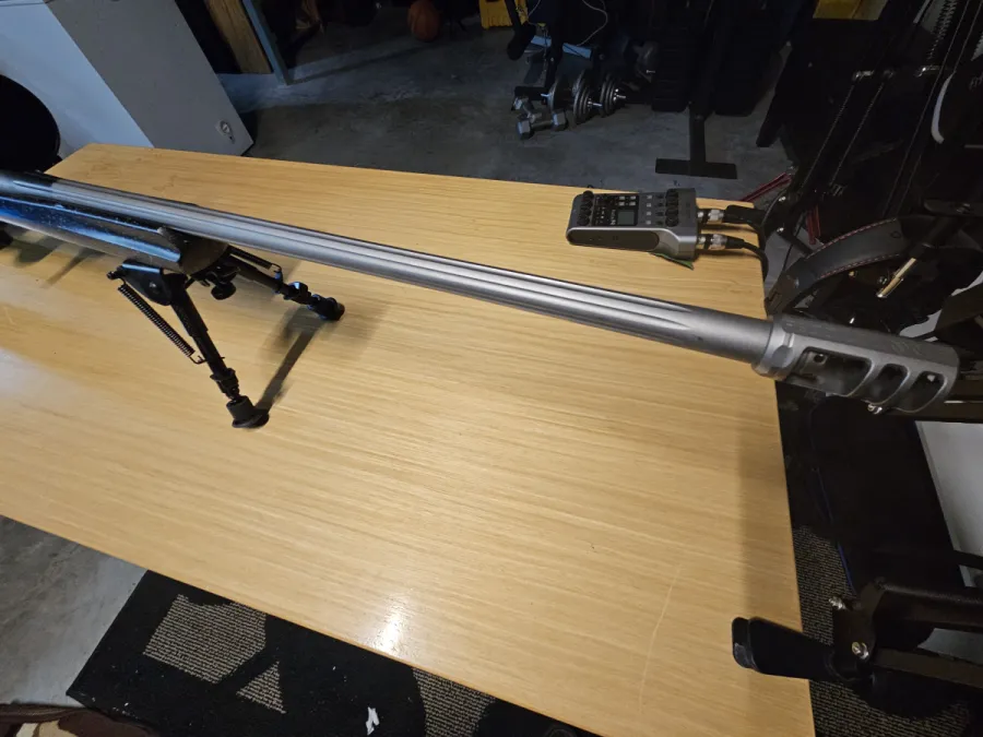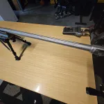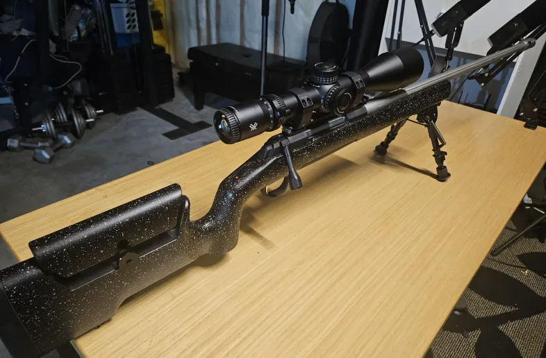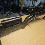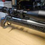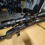 Top with vortex venom 5-25x56 with piccatiny rails that has bubble level and vortex pro rings