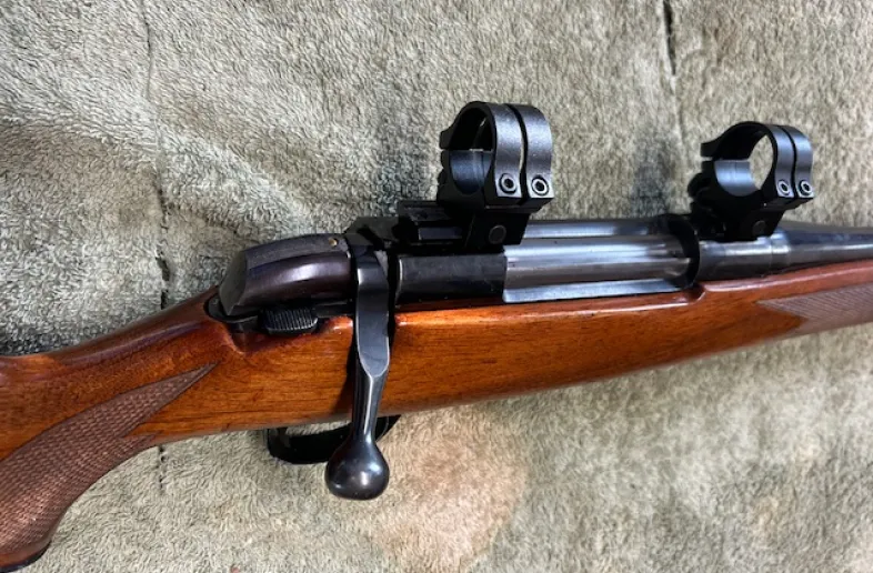 24 inch barrel, bore is very good, drop floor mag, rings as shown included, NO Issues. No cracks.