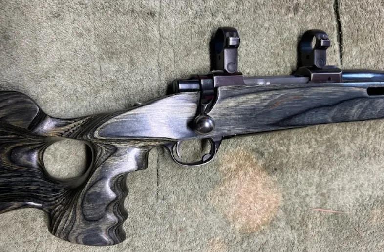 Very good condition with comfy stock. 24 inch barrel, minor bluing fade. Works 100% as it should. Ruger 1 inch rings as shown included.