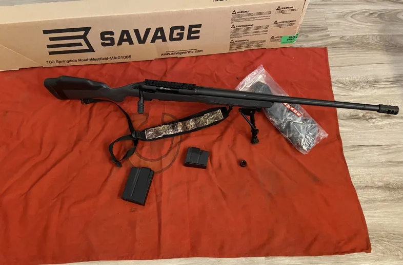 Savage 110 tactical, 6.5 PRC, comes with muzzle break two magazines, 3 shot and one larger. Bipod, shoulder strap, contents for adjusting the stock, and the original box. firearm is in excellent condition, shot about 35 times, cleaned properly each range session, buyer pays shipping and or insurance. (not interested in trades thank you.)