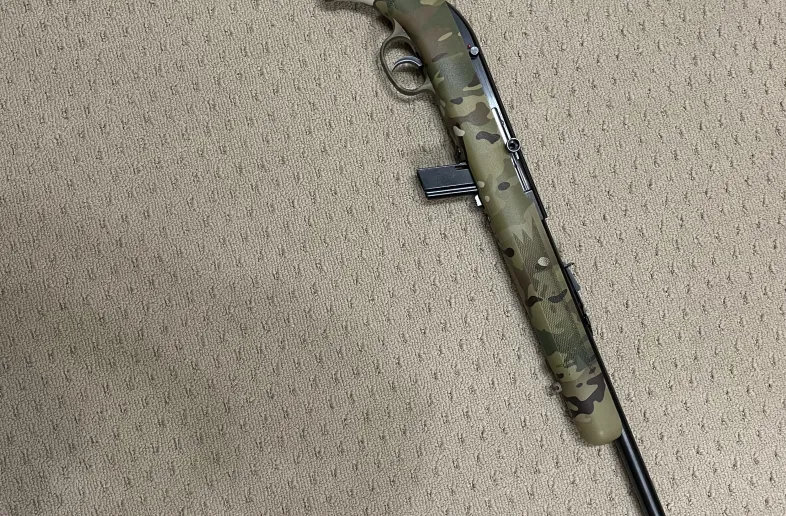 Savage 64 with camouflage stock 22LR semiautomatic rifle in very good condition. Comes with standard 10round magazine. Can ship anywhere in Canada.