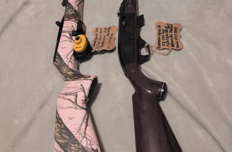 The left one is A Remington model ,597 in muddy Girl Camp The other is a Remington model 10 C both Semi auto 22s real nice condition Tex or phone only 306,621 5400 $325 for the muddy Girl $535 for the Nylon 10