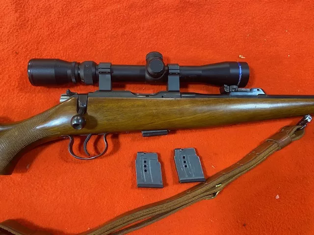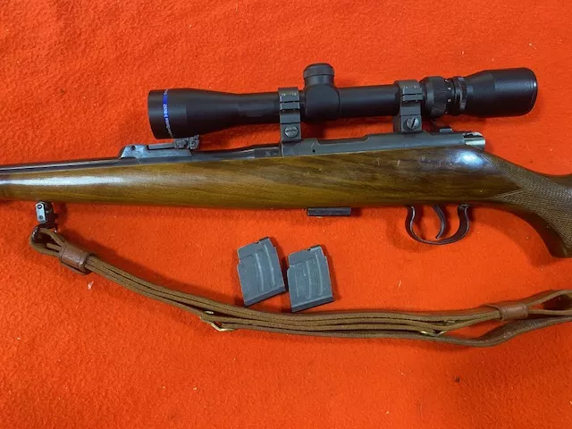 Brno Model 2 22 LR ('76) 25″ BarreL with Excellent bore, with open sights. Comes with new Scorpion 3x9 scope, three magazine's.Checkered walnut stock with some minor handling marks. Detachable Sling swivels and sling. This rifle is in Very good plus condition. $900.00