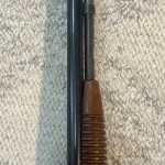 (Always look for stock being cracked where it meets metal. That is typical of these rifles especially older ones. Slam firing is where you hold the trigger down while pumping the action and it fires with each pump.) This one has not been wrecked by slam firing.