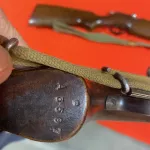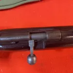 Bottom Cooey Model 82 was a single shot bolt-action .22 caliber target rifle intended for use in training Canadian Army and RCAF cadets during WWII. This Military Cooey Model 82 trainer from WW2 was used for drilling purposes, target shooting, Home Guard and Cadet training.There is a Stock Number and C broad arrow on the bottom of the pistol grip and a crest on the top of the receiver. The bolt also has the C broad arrow. Nice walnut stock with minor marks on the stock as can be expected on a training rifle. This rifle does not have a peep sight and was used as a training rifle for the Lee En-field No 1's. Bluing is very good bore is excellent. Comes with web sling. $550.00.