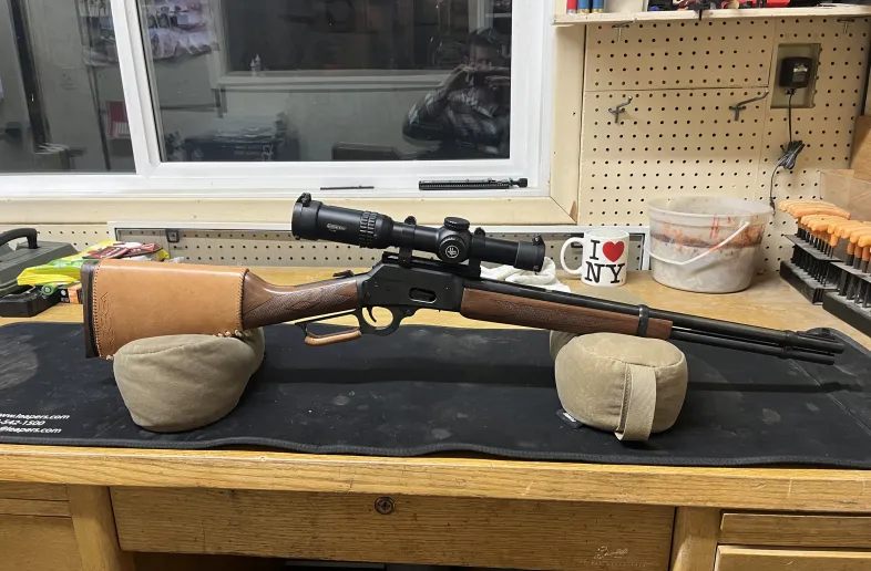 Marlin 357 with vortex strike eagle 1-6x24. I think it is a Remington built Marlin. Leather wrap has been on it since new so wood should be good.