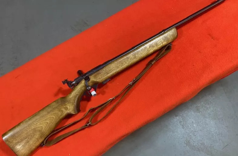 - 26" blued tapered round barrel fitted with a Lyman 17a aperture front sight and a Mossberg adjustable rear peep sight.
