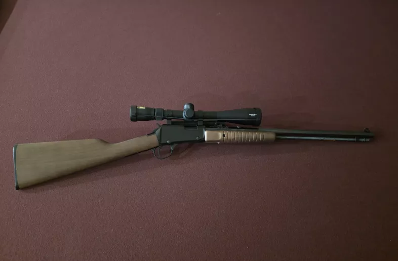 - New henry pump action. octagon 19.75" barrel & scope not included.