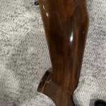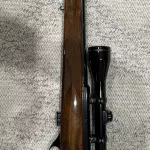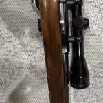 Semi auto with single shot selector also. 24 inch barrel, folding leaf open rear sight; ramp front. Monte Carlo stock with cheek piece, pistol grip, forend feature tip, grip cap, skip checkering. Made in the early 80s.
