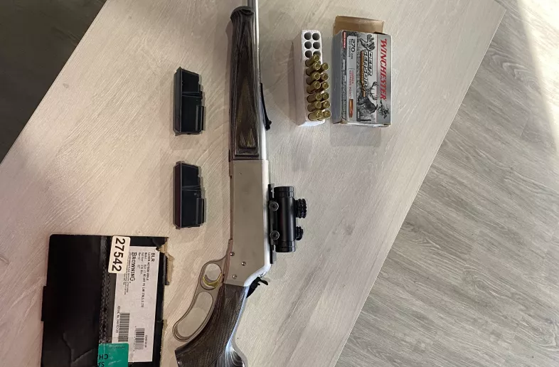 Very lightly used Browning BLR Lightweight, Pistol Grip, Laminated Stock, Stainless Steel Barrel, 270. Comes with red dot. and 2 clips. Very low round count .... 7 to be exact