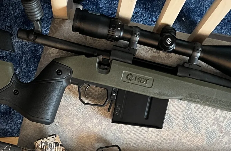 Remington 700 in 7mag. Recently upgraded to MDT field stock in OD Green, hasn’t even been out of the house. 1 aics mag. Has factory stock which is a DBM model with 2 mags. No scope.
