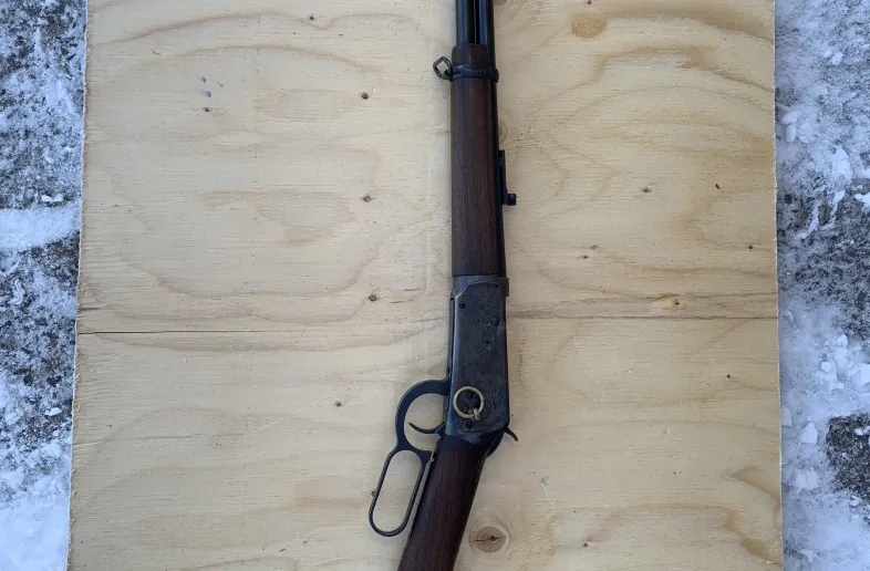 Winchester model 94 30-30. Gun has beautiful engraving with case hardened coloured receiver. Has a gold plated saddle ring. Recently added skinner peep sight. Gun shoots very well