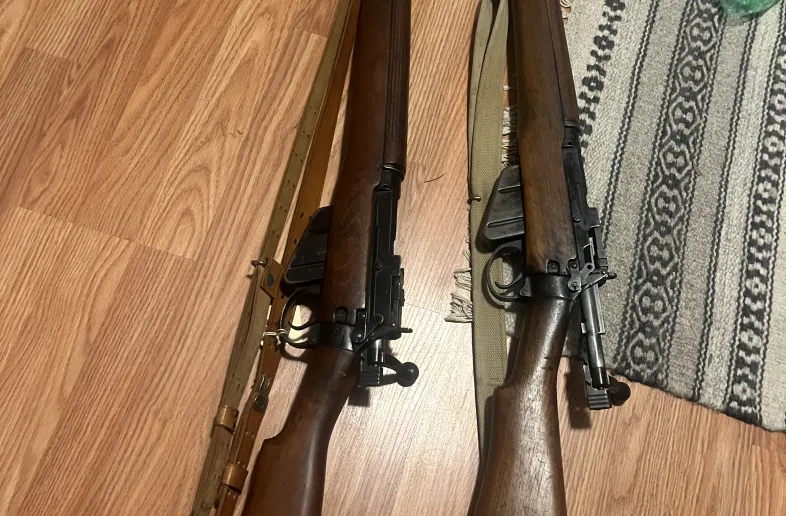 I have 2 very nice condition enfields . The no 4 mark 1 is made in 1944 , appears to be numbers matching . Comes with bayonet . Looking for 1300 bucks obo or trades . And the Jungle Carbine is also very good shape , early 3 digit serial number . Looking for 1200 obo , trades . Thanks