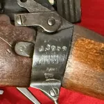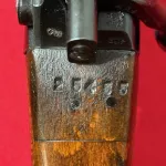 It has the “T” mark on the left side of the body. Not all of the early conversions did. The unique R.S.A.F. Enfield inspection/examiner mark is on top of the front scope pad, confirming that it was one of the 1.403 first conversions.
