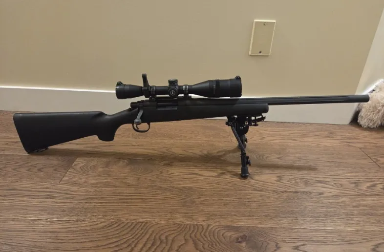 Less than 200 rounds down the pipe, cleaned and oiked. Comes with Champion 6-9" pan/tilt bipod, H-S precision stock, trigger job, Leupold Mark AR 4-12 with sunshade/killflash, Butler Creek scope caps and MK Machining throw lever.