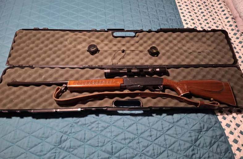 308 Remington woodsmaster with tasco 3x9 and see through mounts. Comes with slind and hardcase