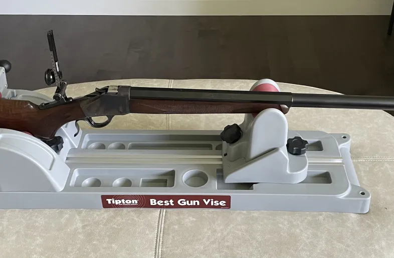 1885 Browning HighWall. In excellent condition. Ladder sight. Level bubble on front sight with interchangeable front inserts. Recessed crown. Factory box. I am the third owner. Bought from a late friend’s estate. I knew the gun’s infrequent and loving use. Reason for selling is I bought a Shiloh Sharps.
