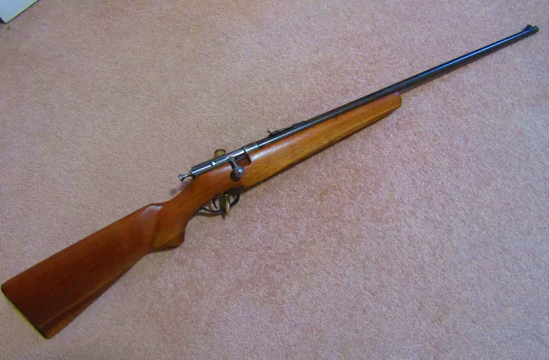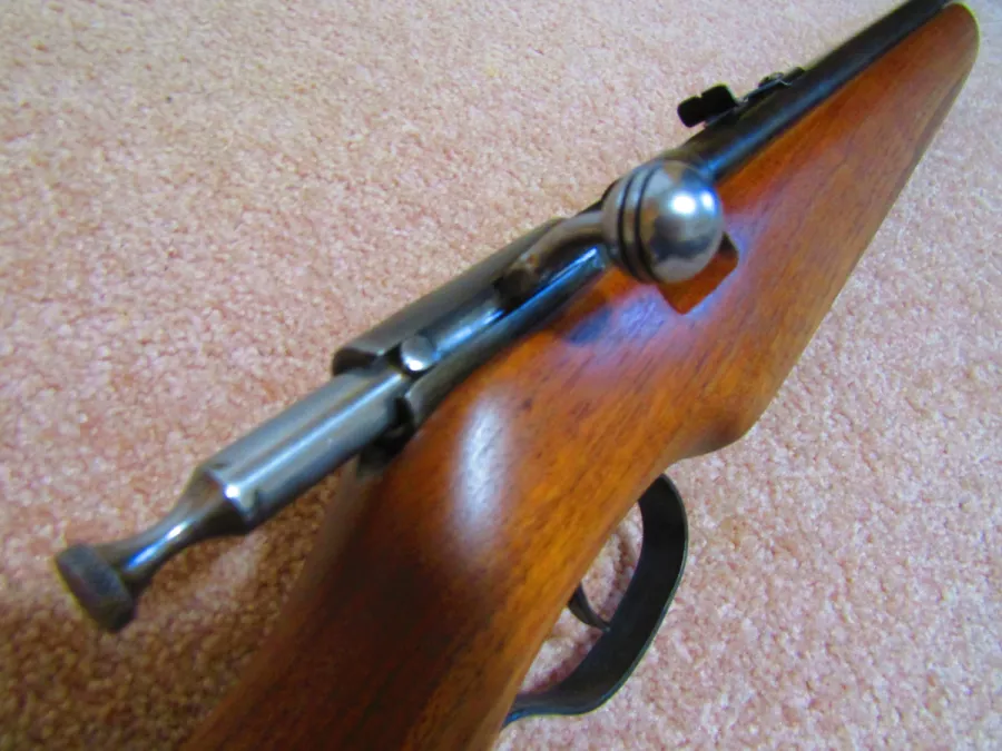 Older 22 caliber Cooey rifle . Nice walnut stock , long 27 inch barrel with decent bluing remaining . Very accurate shooter , work as it should . Local sale preferred , shipping possible .