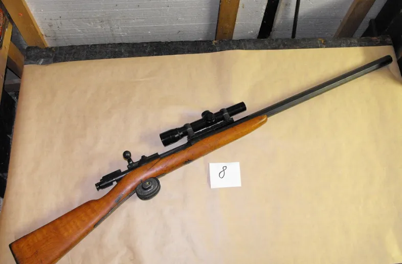 71 Mauser with octagon barrel. Custom built in 45LC. Shoots well and is set up with a Burris "Scout" scope . $900 for rifle with scope. $700. without scope.