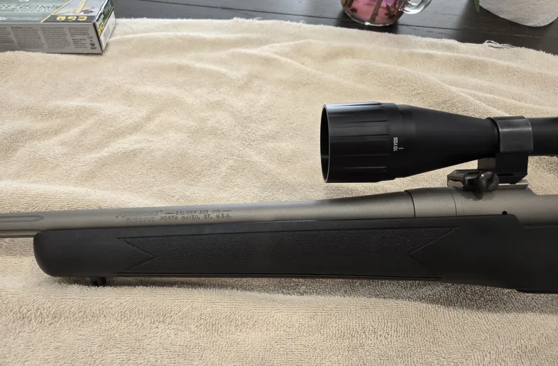 Mossburg patriot in 308 in new condition only 5 rounds threw this rifle.has flutted barrel. 4x12x40 Simmons peo hunter scope.aumo available for more dollars for local sale.625 dollars.