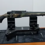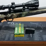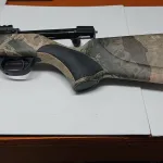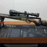 NEW Savage /Stevens 243 model 334 with 60* bolt action c/w camo stock, rubber grips at fore stock and pistol grip, 20" Creakote barrel and action. 3 position safety and nice crisp trigger break. One magazine.