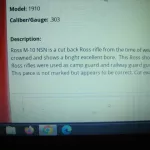 i have forsale a mod 1910 campguard rifle that matches exactly the one in the ross book right down to the barrel lenth ther is some info on google on these rifles if anybody wants to check this rifle is in good working condition an d can be used for hunting if needed asking 850.00 for a scarce mod ross
