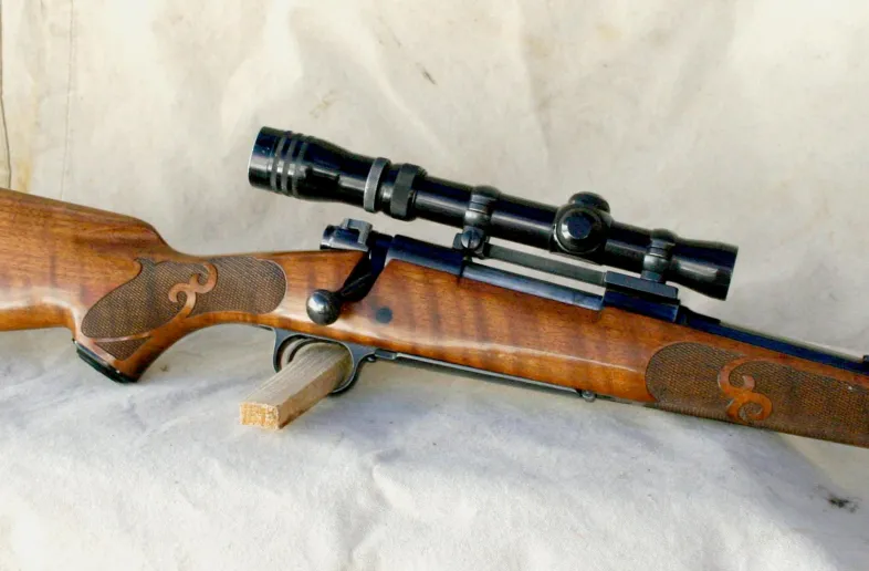This gun was treasured and babied from day one so it retains a new appearance as is evident in the photos, The stock has a few, barely visible light scratches and bump marks, none of which have penetrated the finish and are normal for its age and gentle use. The checkering is well defined with sharp peaks and no flattening or damage. The butt pad has light wear only at the toe. The bluing is 95% original and has a bright factory finish.