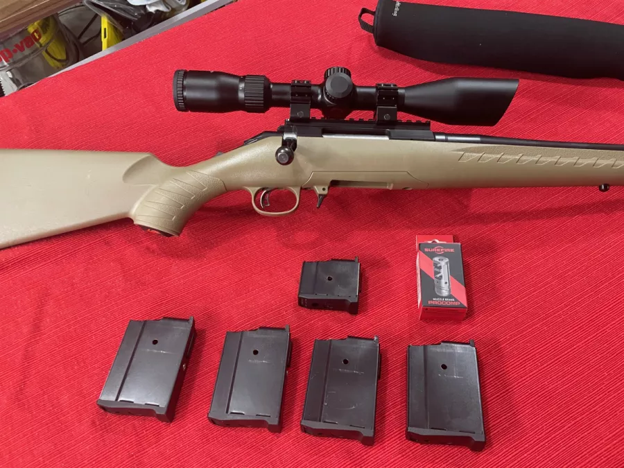 Ruger American Ranch Rifle in 7.62x39. In pristine condition, approx. 500 rounds fired. Includes Surefire Procomp muzzle break, original Ruger 5 round mag and 4 - Mini 30 mags (pinned to 5 round). I will include the Nikko Stirling Nighteater 2.5 - 10x42 scope, it is an older scope but I still use it. I purchase it over a year ago and never used it much, it is the only gun I have in this caliber, never used corrosive ammo. Selling everything as a package deal and not willing to split up. BUYER'S PAL WILL BE VERIFED BEFORE SALE AND BUYER PAYS ALL SHIPPING. NOT INTERESTED IN TRADES. LOWBALLERS WILL BE IGNORED!!