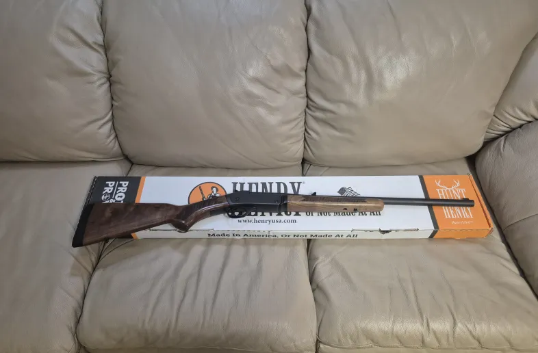 Henry single shot rifle .in 350 LENGEND CAL. FUN RIFLE TO SHOOT.comes with sling posts, excellent bore, never hunted but was test fired. Has a couple of minor marks on stock, very nice condition and comes with original box .rifle comes with open sights ready to shoot.22" barrel.