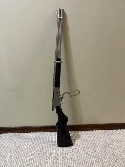 Mossberg 464 30-30. Has the Marinecote finish with a laminate stock. Always functioned properly. Accurate and a great rifle for deer hunting. It is a fun lever action. I have 4 boxes of factory ammo to sell with it as well. 1 box of (19) leverevolution monoflex 140 grain, 2 boxes (40) core-lokt 170 grain and 1 box (20) Herters 150 grain. Ammo is worth approximately $240 retail.