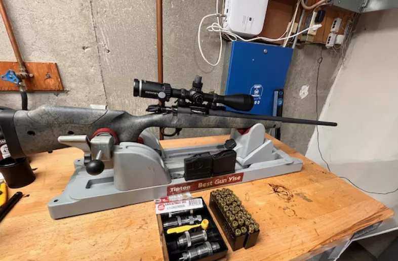 B14 in 6.5 CM . Comes with 6-24-50 Riton scope , rail , factory 5 round mag , AICS 5 round mag , Factory orbital brake , Lee Ultimate 4 die set, 40 brass , 100 130 gr tgk . Rifle was purchased from Calgary Shooting Center in September 2024 . Text is best 780 978 0172