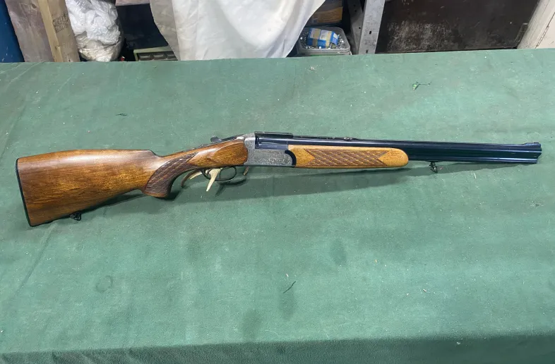 Antonio Zoli 12 gauge over 222. 23,1/2” barrels, full choke, flip up rear sight, scope rail attached, Monte Carlo stock, sling swivels, tight lockup and shoots very well. Forstock latch lever looks like it was changed as that was an issue with these. Shipping available.