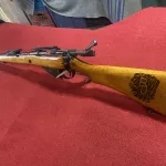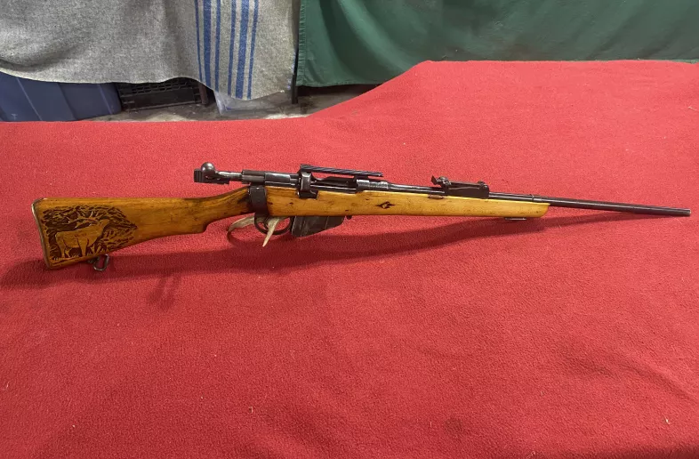1942 lee enfield no1 mk3 sporter rifle. 303 British, sling swivels, nicly carved stock, drilled and tapped with scope rail included. Front sight removed, rear present amd complete. 23” barrel. Feeds shoots and extracts great. Shipping available.