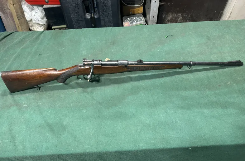Gustaf sporter Mauser in 8mm Mauser. 23” barrel, sling swivels, decent bore, smooth action, repair at lower pistol grip that holds tight. Drilled and tapped as well as open sights. Shipping available.