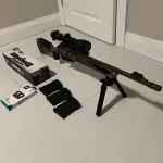 $1800 comes loaded with the rifle, scope, pro rings, factory muzzle brake, 3 magazines (AIC) the original box, and all paperwork. (bipod not included)
