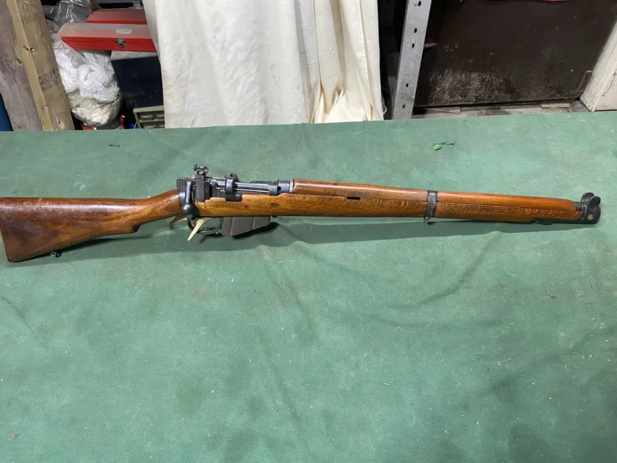 I don’t have much history on this one but it is a 1918 stamped Lee enfield no 1 mk3 star broad arrow stamped. It has an adjustable peep sight and front sight protector. Action is smooth, bore is nice and wood is great. 42” overall length. Shipping is available.