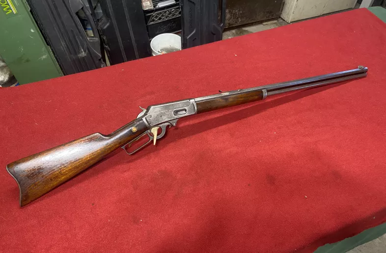 Nice fully functioning Marlin lever action model 1893 in a nice easy to find shootable caliber woth full octagon barrel. Dates to the late 1800’s and the action is still smooth and it shoots great. Some minor chips but nothing major. Super fun rifle to shoot and a great addition to any collection. Missing the rear sight elevator. Shipping available.