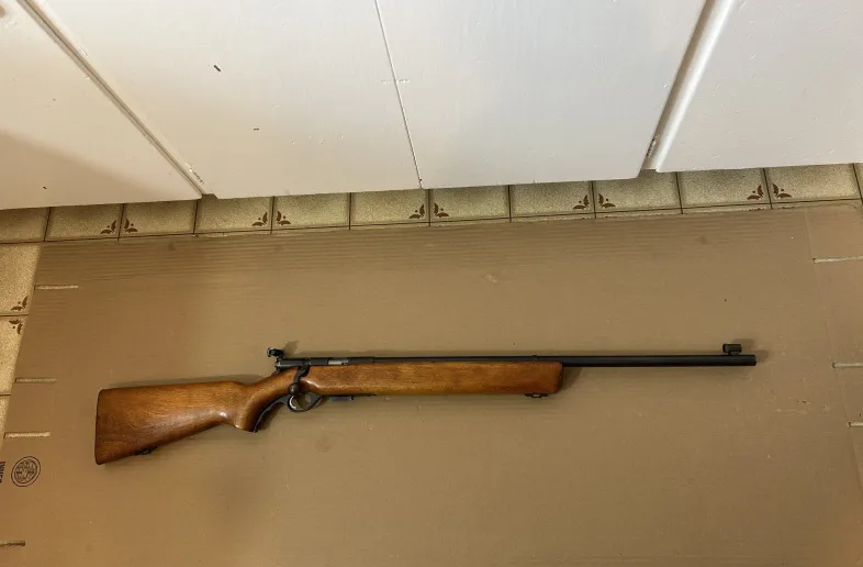 (USED) O,F, Mossberg Model 44 U.S. (a) Rifle. Cal.22 LR, Target Sights, Heavy Barrel & Clip Fed. This rifle has a Mossberg S130 Receiver Sight & Lyman Front Globe Sight.