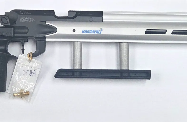 Up for sale is a rather nice Hammerli AR20, entry level competition air rifle. PCP charged and firing at around 560 Fps. 0.177" cal. Overall great condition and comes with fill adapter for the cylinder as well.