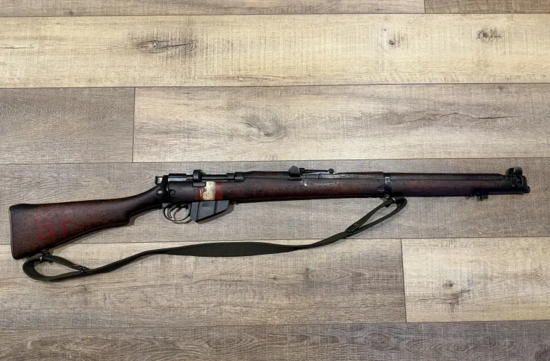 Up for grabs is this previous sporter 1917 Lee Enfield SMLE No 1 MKIII*, parked in a drill rifle stock set. The paint can be easily removed if you would like. It’s a great shooter!