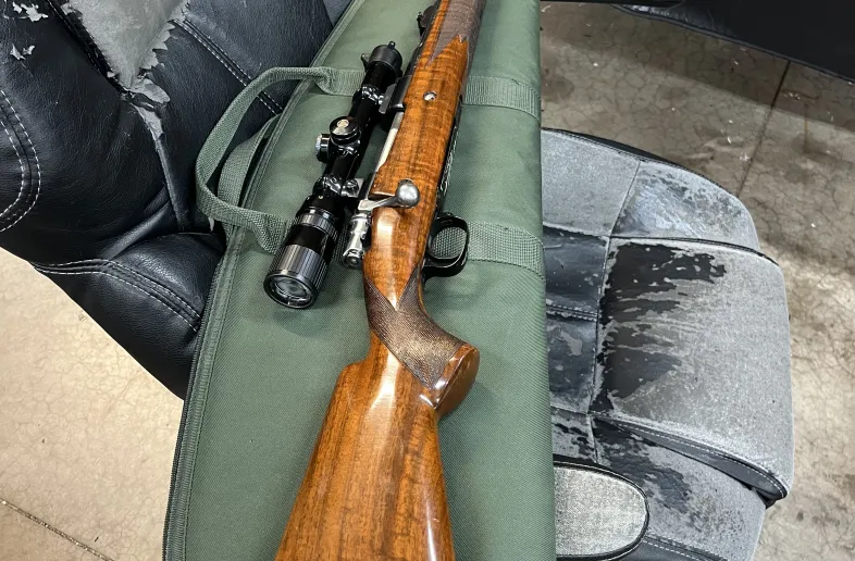 BROWNING SAFARI GRDE 308 Norma Mag. Very good condition, low round count.Comes as shown in picture Bausch & Lomb 1.5x6x32 crystal clear scope. Custom sling 308 Norma Mag is equivalent to 300 winMag. In terms of velocity, energy. PAL Required