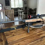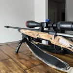 Browning Hunter 6.5 Creedmoor custom. bolt.muzzle brake custom made from witts machining. Bedded. Custom stocks from Boyd’s. RDS. Range, dial, shoot. scope from scorpion two clips sweat covers strap custom gun case the rifle is sighted in for 500 yards