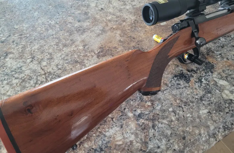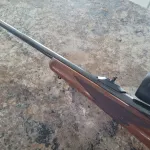 Ruger M77 RS Mk1 (round top w/weaver bases, tang safety & red butt pad) in .7mm Rem Mag. 24” barrel all original with open sights. The mounted Nikon 3-9x40 Coyote Special with Long Range BDC reticle scope can be included for extra. Dies, Brass and Bullets available.