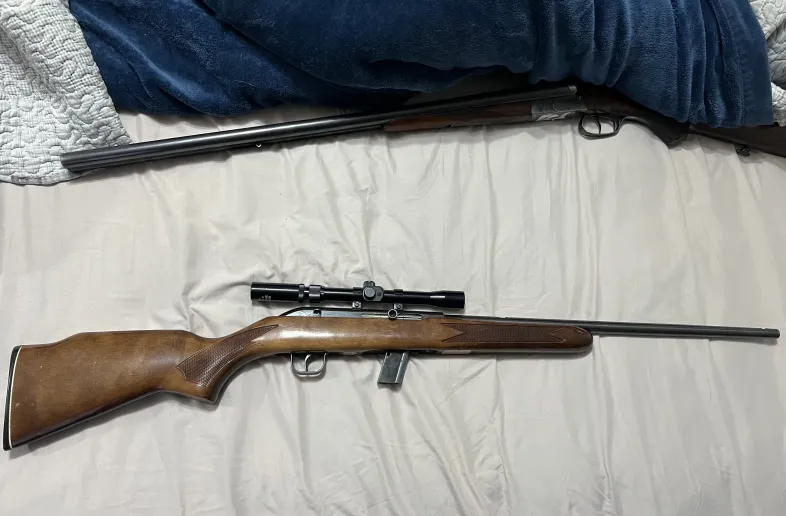 Here is a lakefield model 64b 22lr semiauto. Rifle comes with a 10 round mag and is missing the iron sights but comes mounted with a 2-7 scope. Rifle works good and cycles as it should. Asking 225 or try your trade