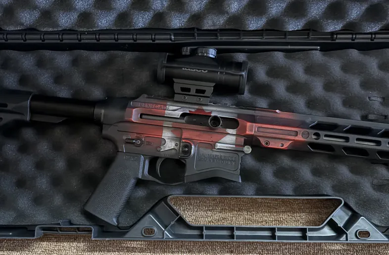 Brand new never fired. Has tasco red dot scope brand new. 3 clips one 45 round and two double 10 round clips. Chambered in 223/5.56. 1600obo
